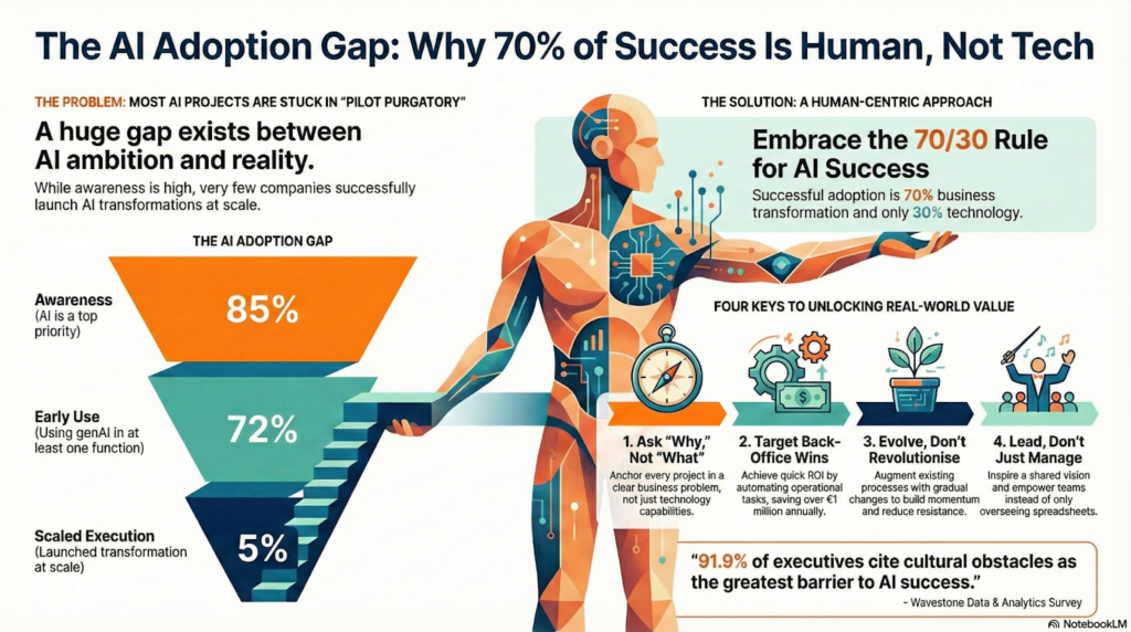 The real gap isn’t opportunity — it’s execution, change management, and talent reinvention.